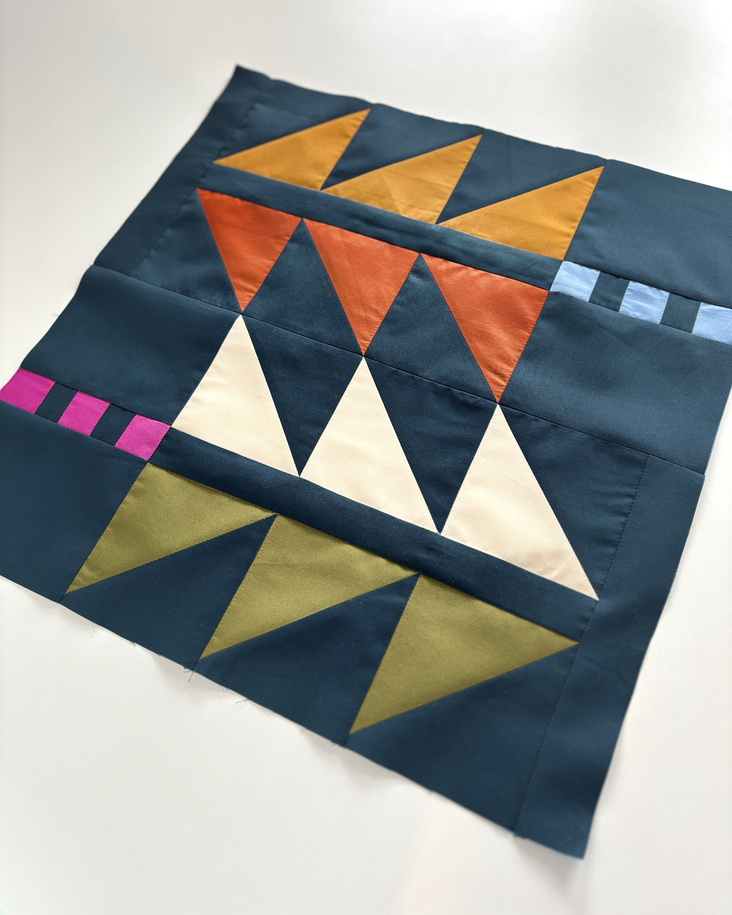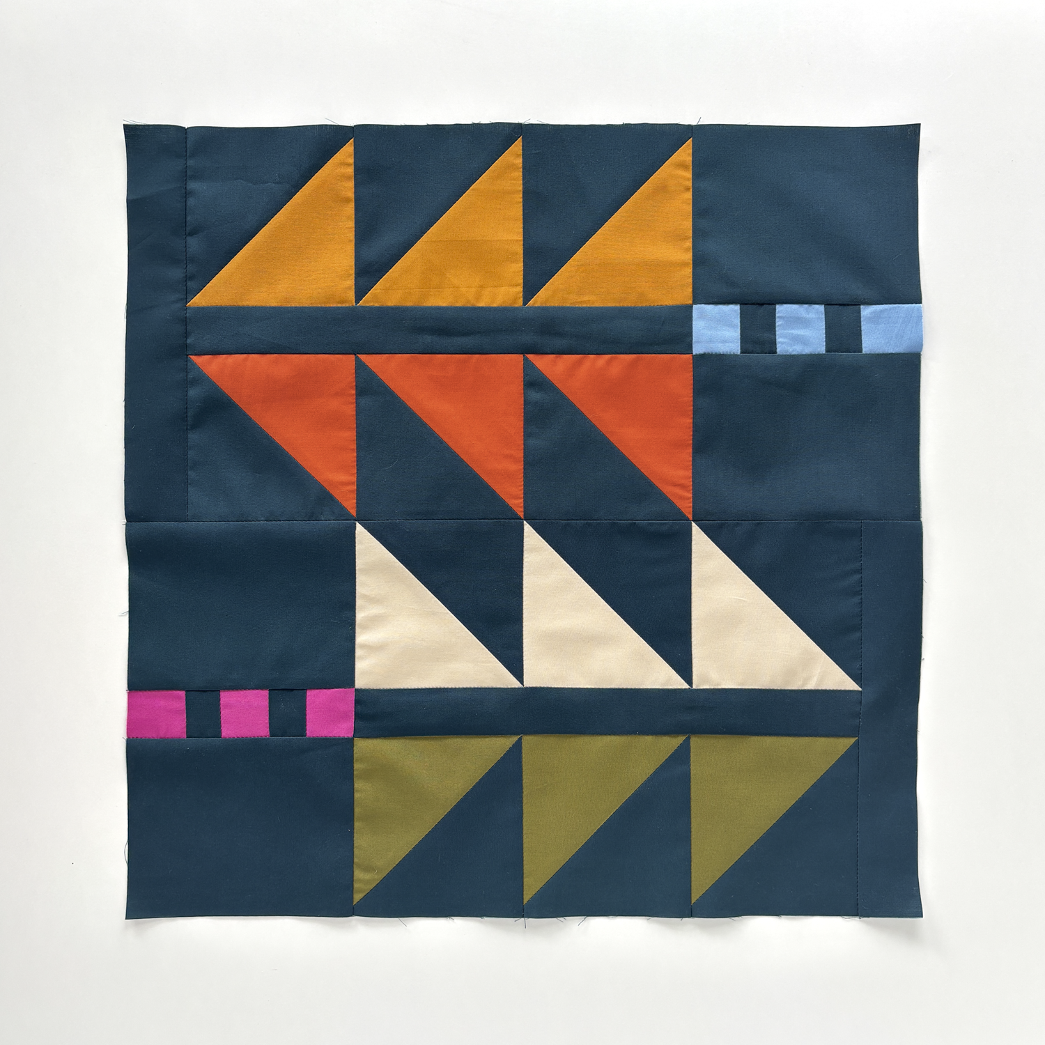 The Trailblazer block is built on repetition and direction. At its core are half square triangles (HSTs), arranged to create a sense of movement across the block - like blazing a trail.