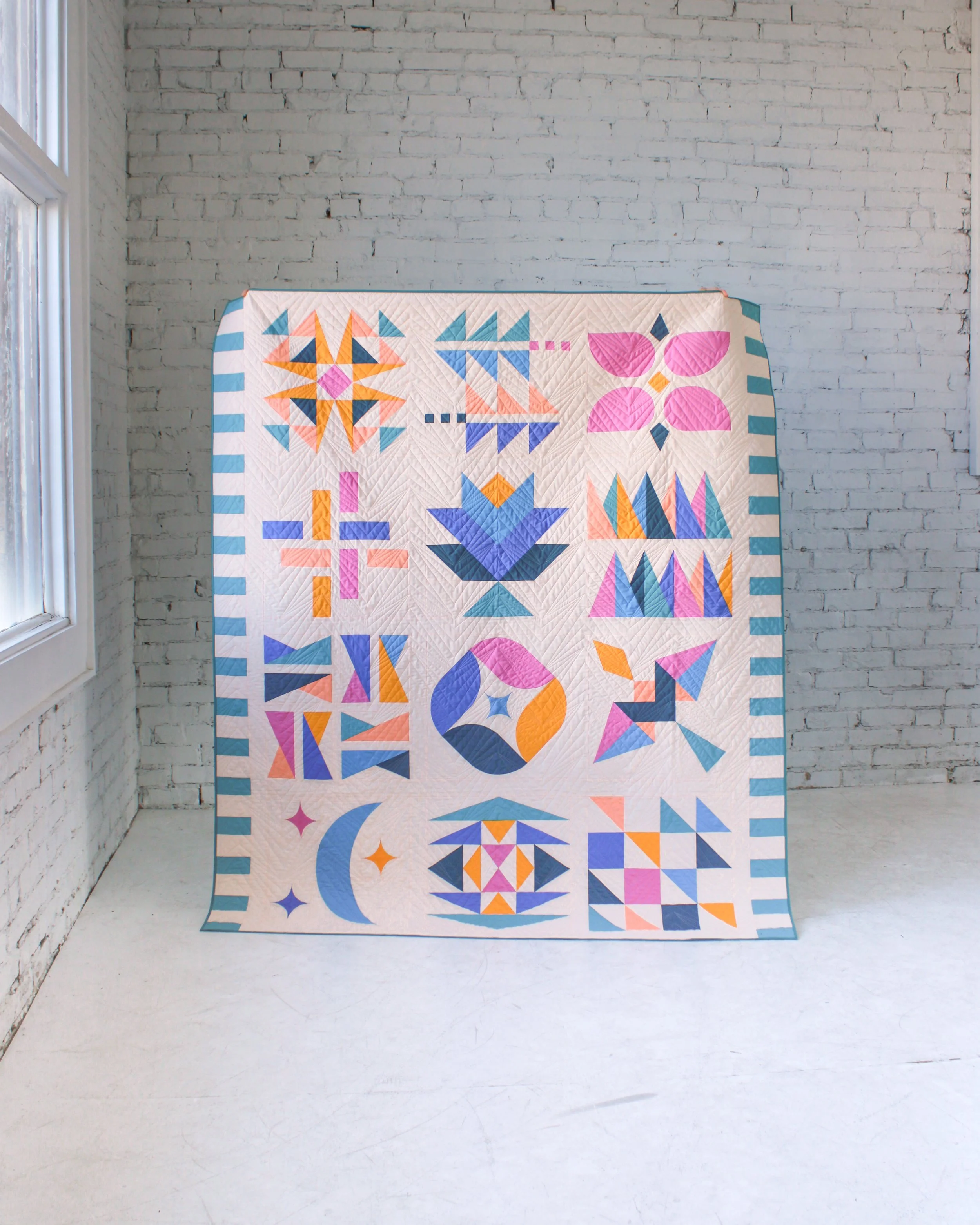 This sampler quilt is designed as a skill builder, guiding you through twelve unique blocks that introduce new techniques and playful modern designs each month. We’ll start with a beginner friendly block, and by the end you’ll be using FPP, sewing curves, and using HRT's like an expert! All membership tiers include instructional videos to guide you through every step, so this quilt is approachable for beginners while still offering fresh challenges for experienced quilters.