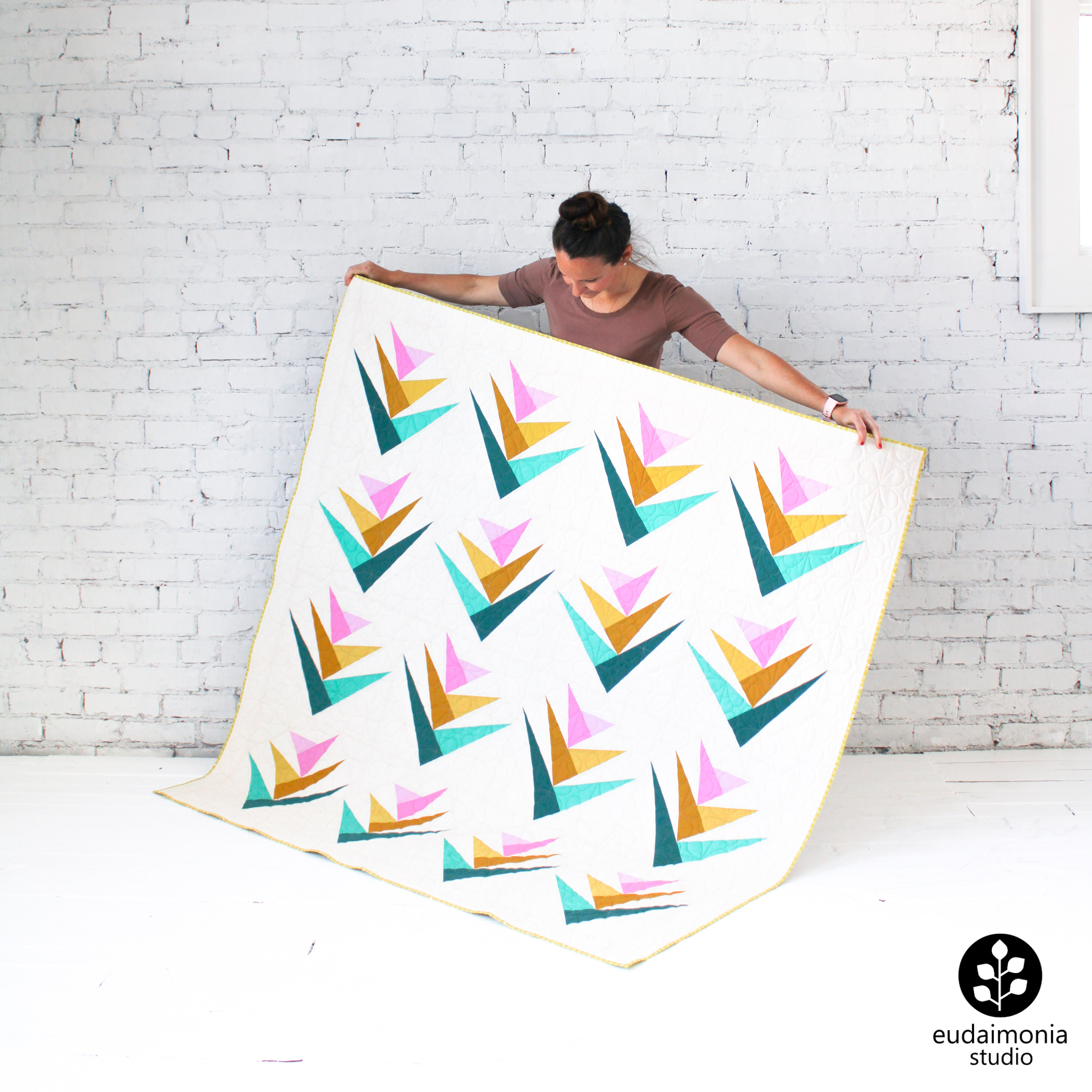 “Eudaimonia” is the Greek word for “human flourishing.” Eudaimonia Studio designs are inspired by the ancient question of what it means to live well. The Grow Wild quilt is inspired by the concept of lovingkindness and, when cultivated, its ability to transform barren land into a field of wildflowers. In Buddhism, metta meditation is the practice through which this compassion is cultivated toward both ourselves and others by concentrating on kind phrases and goodwill. In our often fractured and antagonistic world, sowing seeds of metta means more connection, beauty & love within and all around us.