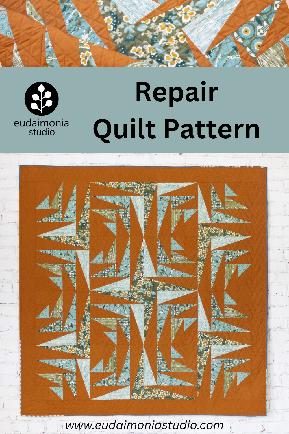 True to its inspiration, the Repair quilt was originally designed to have improv-cut or “wonky” units (see the super-scrappy version here!). This Six-Color version includes instructions for a “proper” block style, for those wanting to perfect their skills and get precise points.