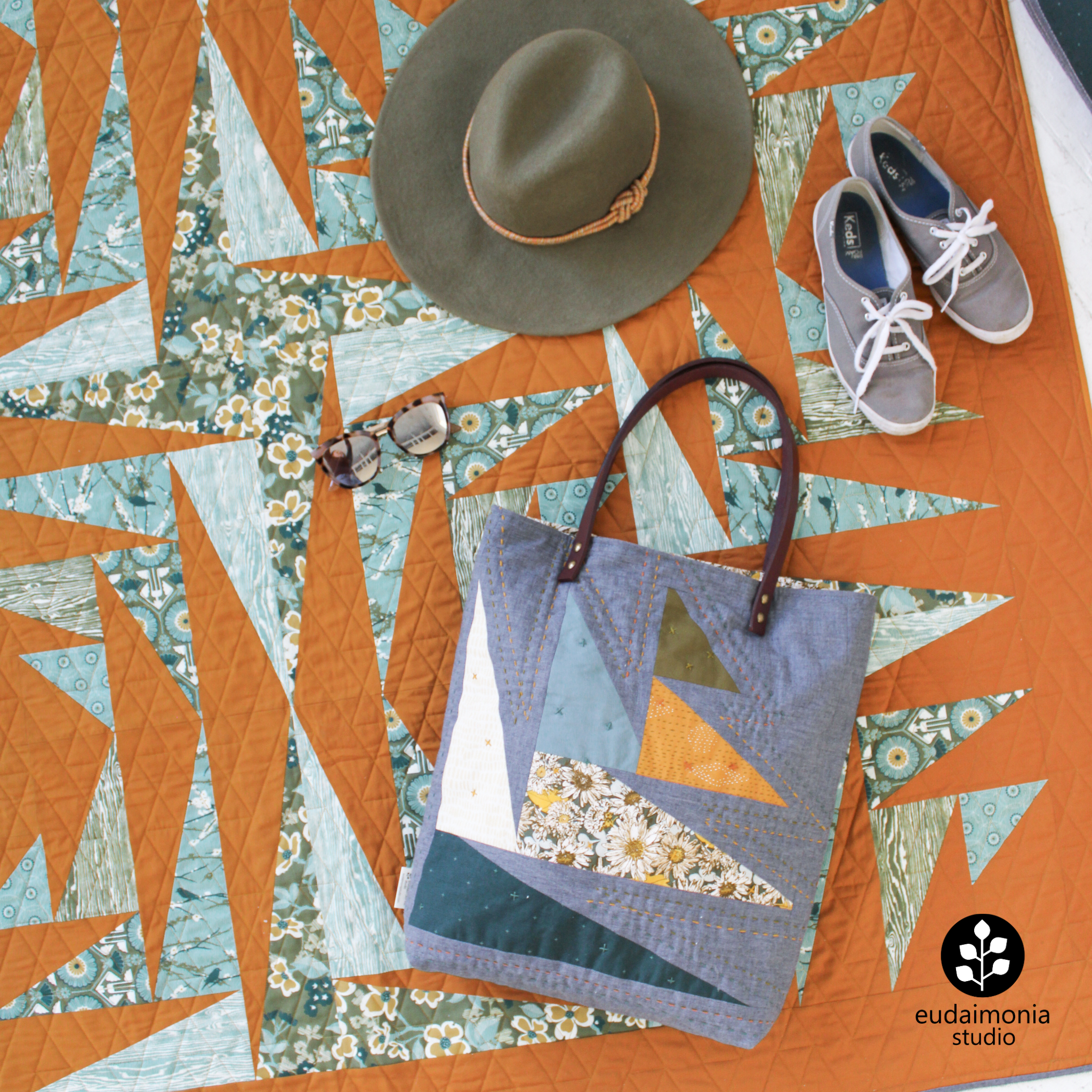 This dynamic quilt offers plenty of opportunity to play with both color and overall design, with blocks that can be oriented differently for endless possibilities using six fabrics. You can also turn your Repair block into a quilted tote bag using this tutorial on the blog!