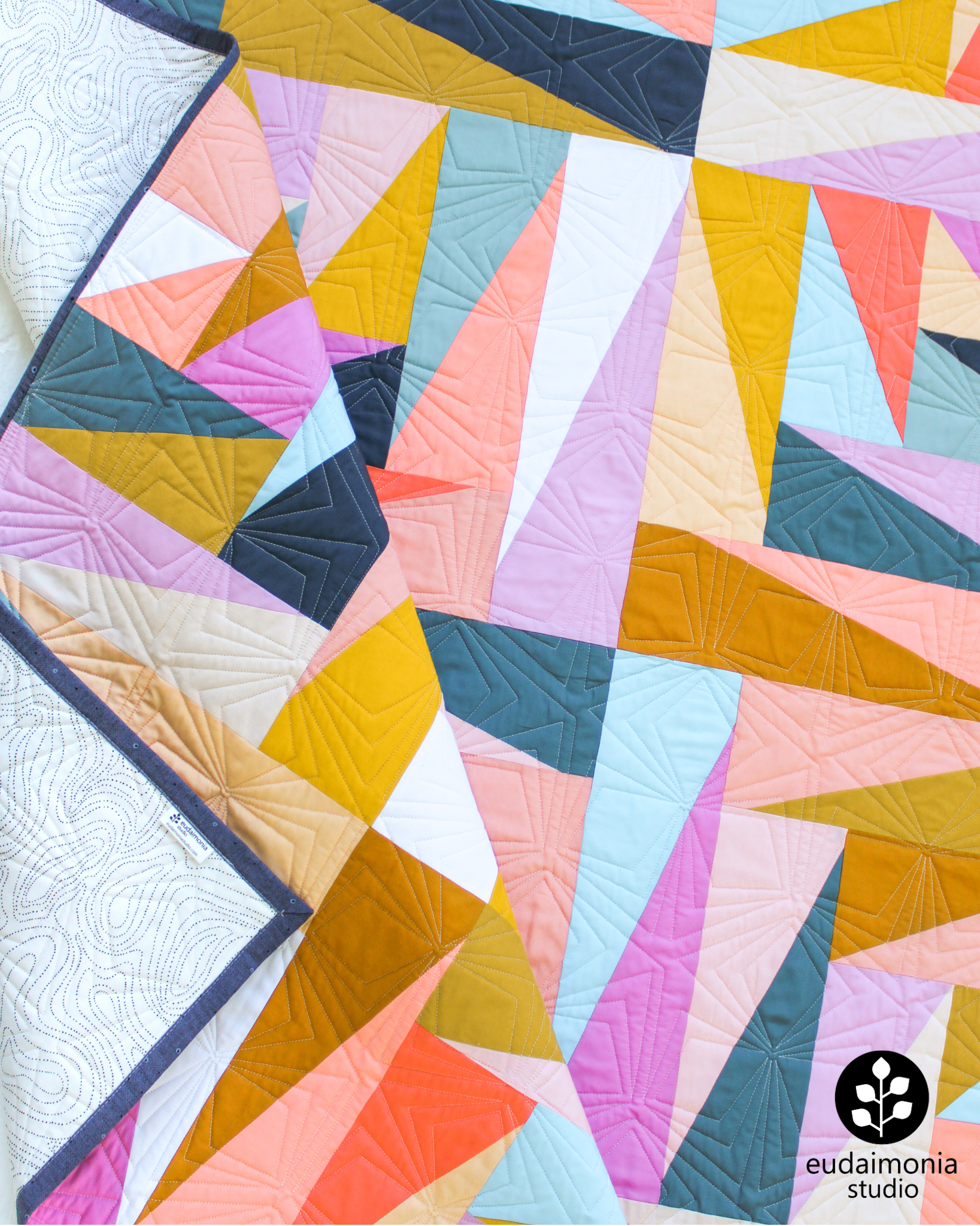 True to its inspiration, the Repair block was originally designed to have improv-cut or “wonky” units. This “imperfect” block style is an option for fun and carefree sewing with a unique, quirky final look.