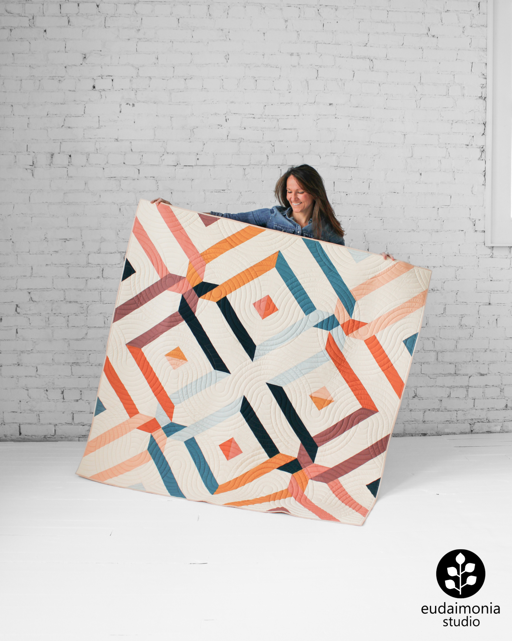 I’ve given a lot of thought lately to the importance of community. What are we without our relationships and connections? After all, we are social creatures and need each other to survive, let alone thrive. The Villager quilt is inspired by the importance of coming together to lend a helping hand, and of being able to lean on one another. The design reflects how “villagers” link arms and surround their community members in times of need. It is a call to embrace our shared humanity and responsibility to care for our fellow villagers, in ways both big and small.
