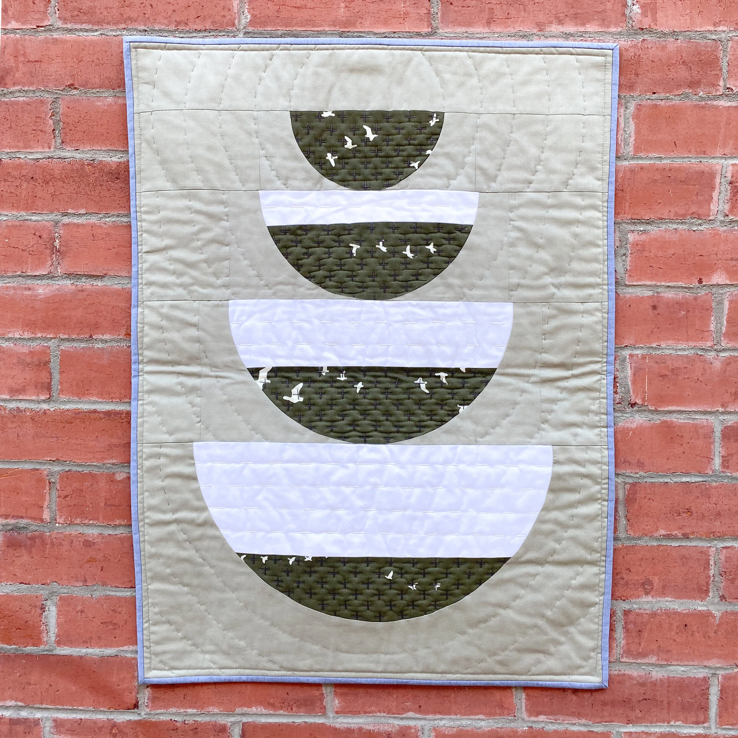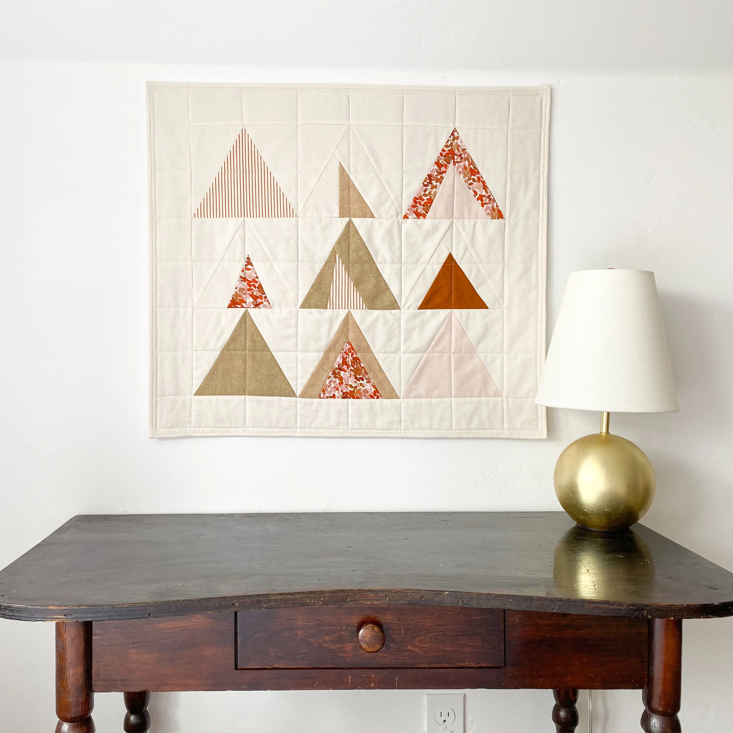 This wall quilt is machine quilted and bound for extra durability. Made with both cotton-linen blend and cotton fabrics. Back features stitched-in sleeves for easy hanging with wooden dowel (not included).