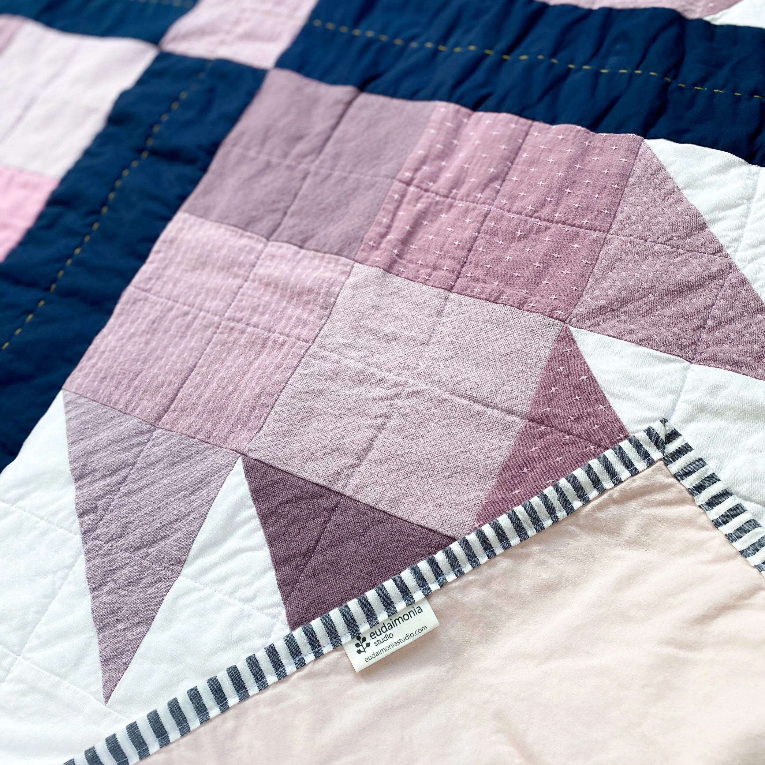 This quilt is machine quilted and bound for extra durability. Made with 100% cotton fabric.